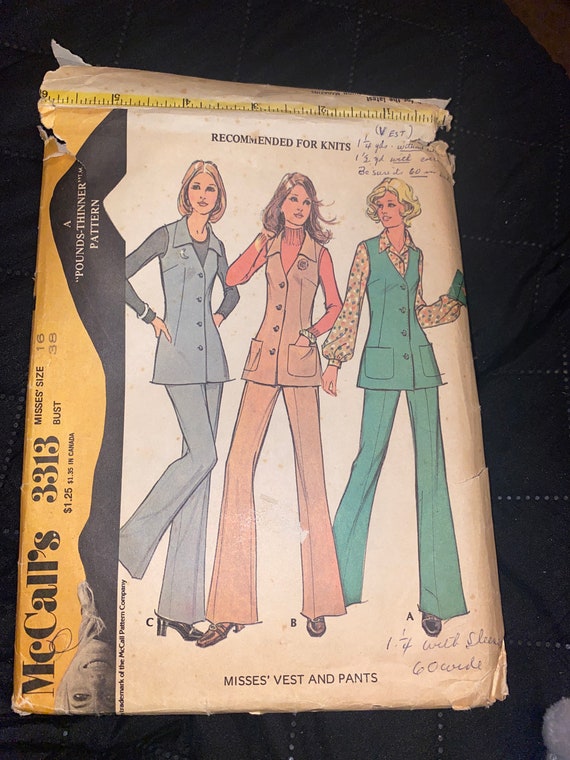 1972 Mccalls 3313 Sewing Pattern Vest Pants Size 12 34 Bust Etsy