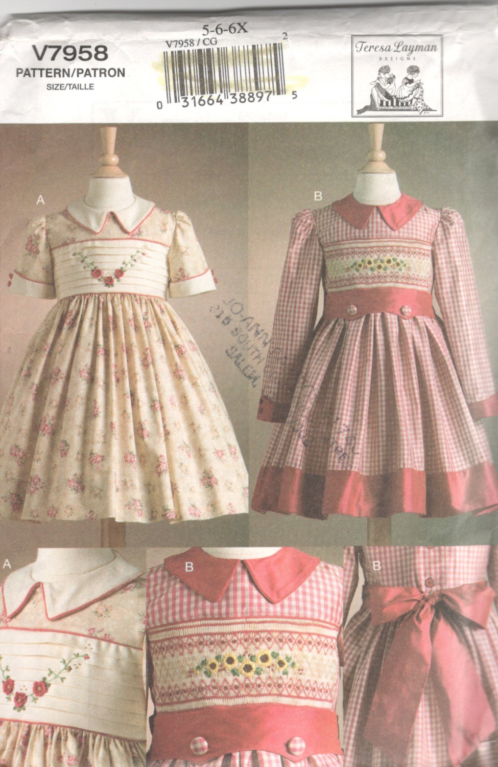 Vogue 7958 Girls Smocked Dress Pattern Transfer Teresa Layman Etsy Canada